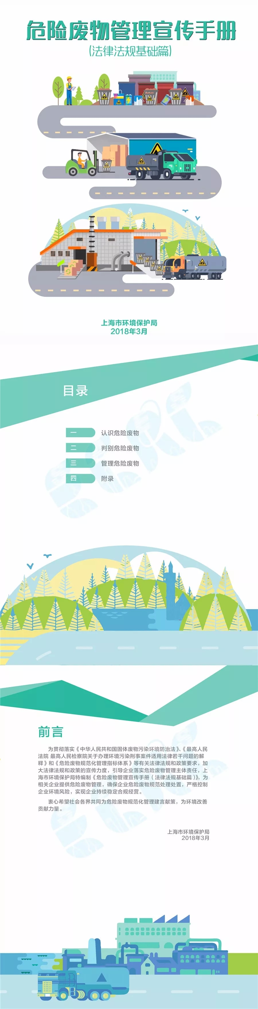為提升企業(yè)環(huán)境保護意識,規(guī)范危險廢物管理,上海市環(huán)保局組織編制本《 危險廢物管理宣傳手冊 ( 法律法規(guī)篇 ) 》 ,供企業(yè)參考使用。希望廣大企事業(yè)單位主動承擔主體責任,規(guī)范自身行為,合規(guī)守法經營。