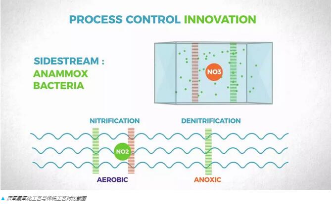 Anammox菌可將氨氮和亞硝酸氮結合轉化為氮氣。這個工藝過程節(jié)省了能源,而且占地面積更小。