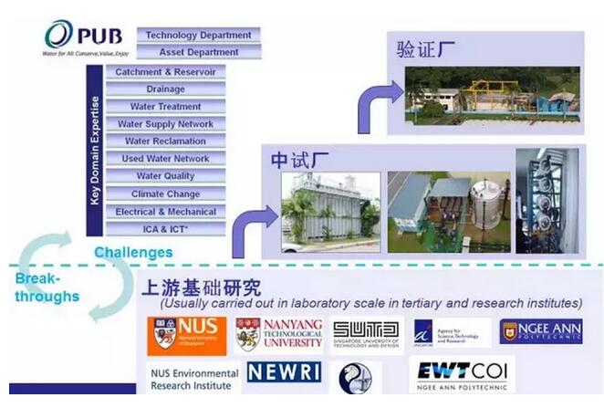 而如何將重大工程和科研投入,實(shí)實(shí)在在地轉(zhuǎn)為產(chǎn)業(yè)推動(dòng)力,新加坡的實(shí)證研發(fā)和示范研發(fā)機(jī)制功不可沒(méi)。水處理技術(shù)從實(shí)驗(yàn)室到中試再到生產(chǎn)規(guī)模使用,須經(jīng)歷一個(gè)長(zhǎng)期過(guò)程,而新技術(shù)的應(yīng)用,獲得業(yè)主的信任和試用的成本也很高,這也是水處理技術(shù)推廣難和推廣慢的問(wèn)題所在。