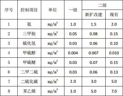 卸料大廳采用離子氧送風(fēng)除臭系統(tǒng),垃圾池間采用化學(xué)洗滌除臭系統(tǒng),廠界惡臭污染物執(zhí)行《惡臭污染物排放標(biāo)準(zhǔn)》(GB14554-1993)中的二級(jí)新建項(xiàng)目標(biāo)準(zhǔn)限值。惡臭無組織排放執(zhí)行以下標(biāo)準(zhǔn):