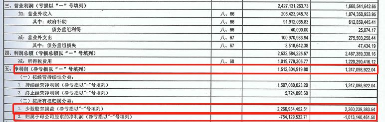 唯一的可能就是得益于少數(shù)股東損益補(bǔ)正(凈利潤=歸母凈利潤+少數(shù)股東損益),也間接說明了中國節(jié)能環(huán)保集團(tuán)自身全資子公司虧損很嚴(yán)重。