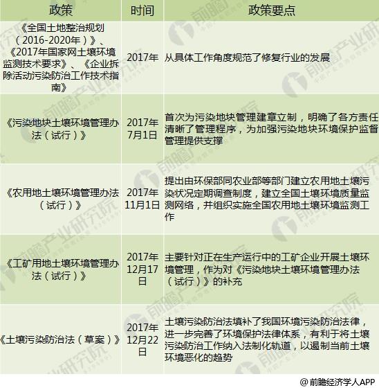 圖表1:2017年國(guó)家出臺(tái)土壤管理政策匯總
