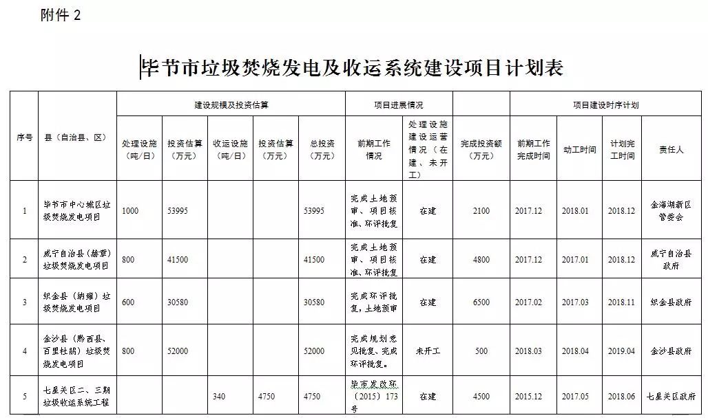 一是集中力量打項目攻堅戰(zhàn)。加強垃圾處理設(shè)施建設(shè),集中解決垃圾處理設(shè)施建設(shè)滯后、垃圾處理能力不足的突出問題,2018年基本建成運營畢節(jié)中心城區(qū)、金沙、織金、威寧垃圾焚燒發(fā)電項目,新增垃圾焚燒處理能力3200噸/日;建成各縣(自治縣、區(qū))10個城鄉(xiāng)垃圾收運系統(tǒng),新增垃圾轉(zhuǎn)運能力3500噸/日;編制《畢節(jié)市偏遠鄉(xiāng)鎮(zhèn)垃圾處理設(shè)施專項規(guī)劃》,啟動建設(shè)偏遠鄉(xiāng)鎮(zhèn)小型垃圾無害化處理設(shè)施,新增垃圾處理能力1200噸/日;啟動185個非正規(guī)垃圾堆放點治理前期工作,全面治理存量垃圾。