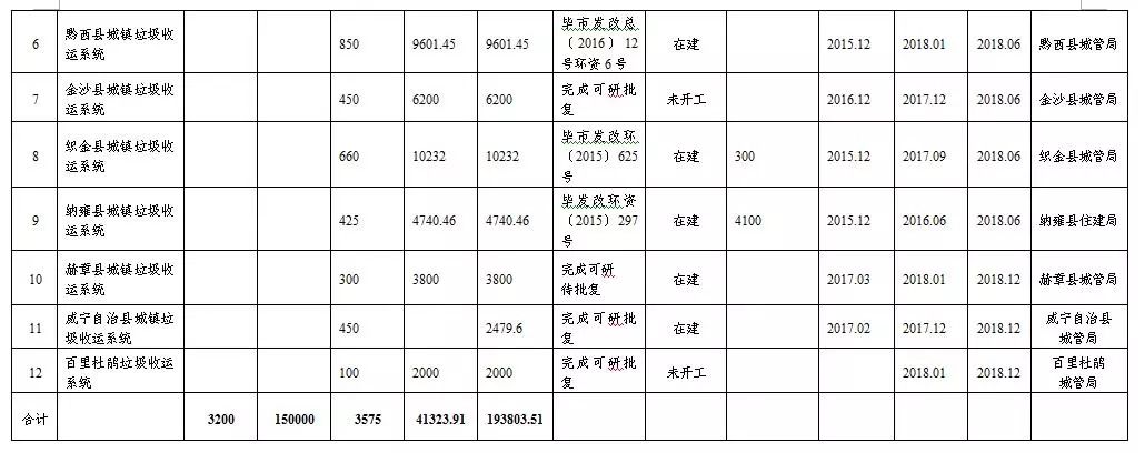 (一)項目攻堅(2018—2019年),集中解決垃圾處理設(shè)施短板。規(guī)劃建設(shè)城鄉(xiāng)垃圾收運處理設(shè)施,新增垃圾處理能力4400噸/日,新增垃圾轉(zhuǎn)運能力3500噸/日。七星關(guān)區(qū)、金沙縣85%以上行政村垃圾得到有效治理,其他縣(自治縣、區(qū))80%以上行政村垃圾得到有效治理。