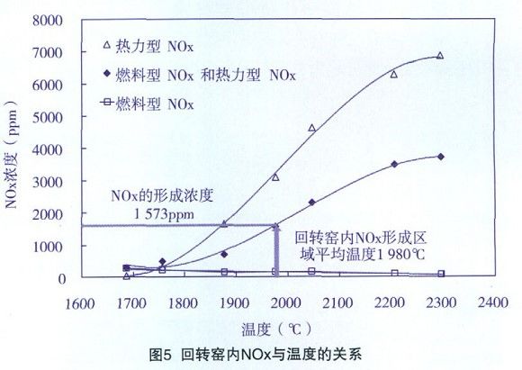 在水泥熟料的煅燒過(guò)程中,會(huì)產(chǎn)生大量的氮氧化物,這些氮氧化物主要是NO和NO2,其中NO約占90%以上,而NO2只有5%~10%。按其來(lái)源劃分主要取決于原、燃料中氮的含量、燃燒溫度的高低和燃料類型。