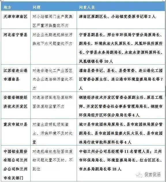 此外,從本次通報的案例看,在被查處的黨員干部中,既有地方黨組織主要負責人,也有環(huán)保局、水務(wù)局、園林局等職能部門的黨員干部;既有負責執(zhí)法檢查,也有負責監(jiān)管審批的黨員干部;既有黨政“一把手”,也有國有企業(yè)相關(guān)負責人。