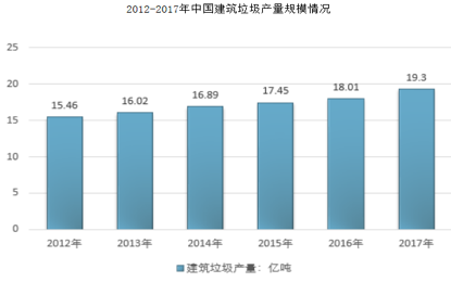 2017年我國建筑垃圾產生量約19.3億噸,每噸建筑垃圾的運輸與處置費用按照35元計算,2017年我國建筑垃圾處理行業(yè)規(guī)模達到675.5億元。