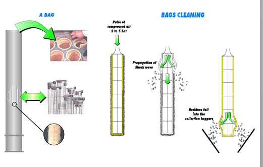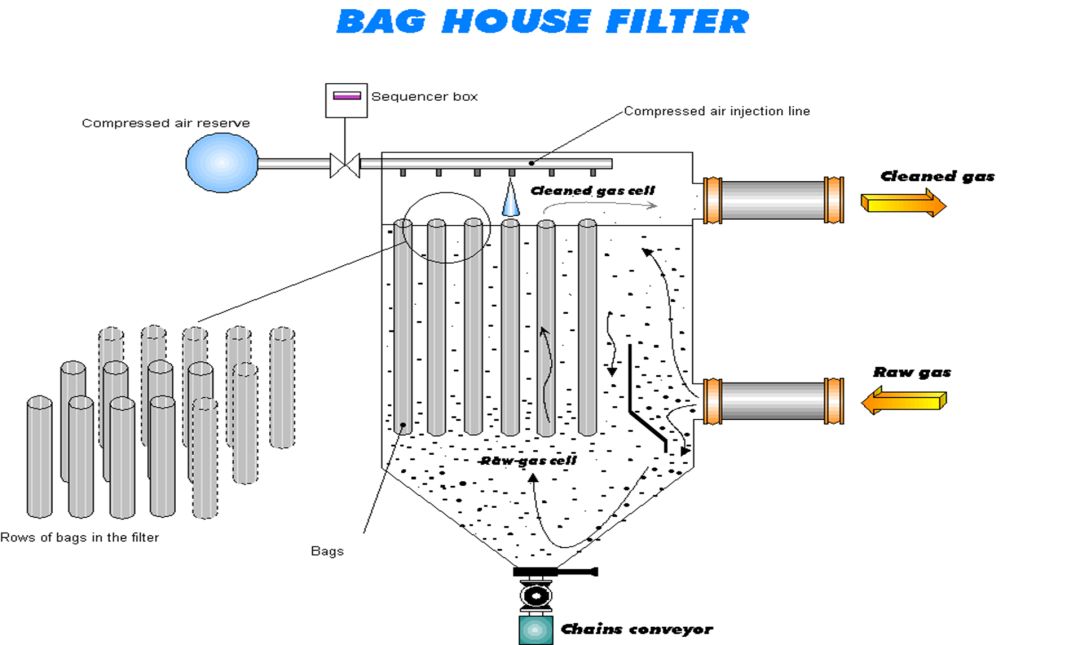 布袋除塵器型式為下進(jìn)氣、外濾袋、脈沖噴吹清灰;