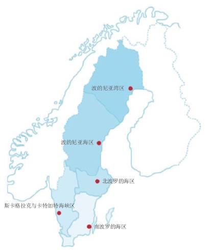 2000年,《歐盟水框架指令》開(kāi)始實(shí)施,歐盟各成員國(guó)的水資源管理工作的開(kāi)展更協(xié)調(diào)、更統(tǒng)一。自2004年起,為了更有效地管理水環(huán)境,瑞典被劃分為五大水資源區(qū)(如圖1、2所示),每個(gè)區(qū)包含多個(gè)江河流域。瑞典總共有119個(gè)主要的江河流域,這些流域是地方水資源管理工作的起點(diǎn)。這五大水資源區(qū)是按照它們與海床的地理區(qū)域關(guān)系劃分的,這些海床包括:波的尼亞灣區(qū)、波的尼亞海區(qū)、北波羅的海區(qū)、南波羅的海區(qū)、斯卡格拉克與卡特加特海峽區(qū)等。此后瑞典在五大水資源區(qū)開(kāi)展水資源管理工作。