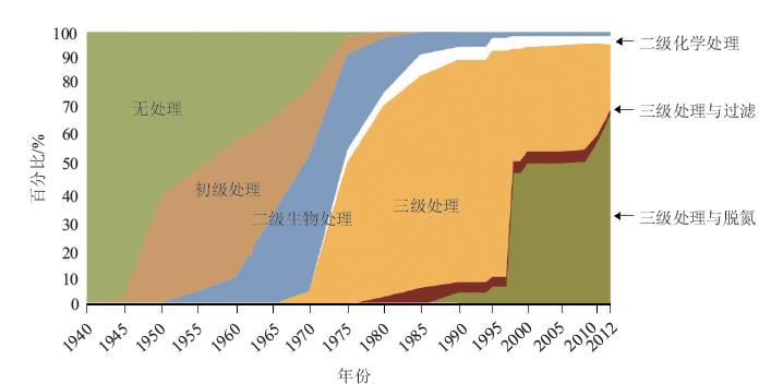 到20世紀(jì)20年代為止,幾乎所有的大城市都建立了市政污水管道系統(tǒng),市鎮(zhèn)和社區(qū)污水系統(tǒng)的建設(shè)進(jìn)度仍然緩慢。而市政污水處理能力不能滿(mǎn)足河流、湖泊、沿海水域快速惡化的水質(zhì)量問(wèn)題的需求。1940年,全國(guó)僅有15個(gè)運(yùn)營(yíng)的城市污水處理廠(到1955年,此數(shù)目增加了一倍)。大量排放的營(yíng)養(yǎng)物質(zhì)和耗氧污染物導(dǎo)致了魚(yú)類(lèi)大面積死亡和水傳染疾病,越來(lái)越引起公眾的關(guān)注。此外,在20世紀(jì)上半葉,水污染問(wèn)題被視為一個(gè)需要地方解決的城市問(wèn)題,對(duì)采取綜合治理行動(dòng)造成了阻礙。