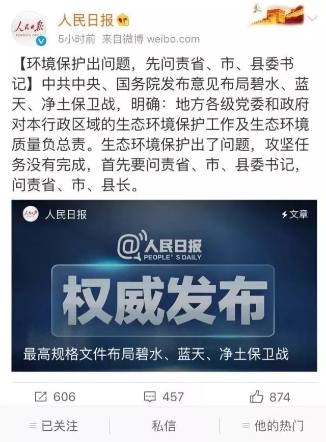 《意見》首次提出中央和國家機關相關部門要制定生態(tài)環(huán)境保護責任清單,各地各部門要制定生態(tài)環(huán)境保護年度工作計劃和措施清單,并且每年向黨中央、國務院報告落實情況。