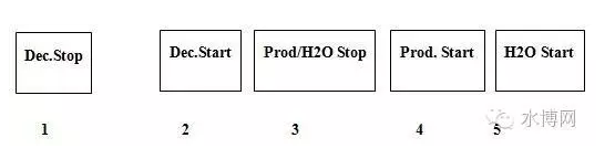 4 號鍵為開始生產(chǎn)鍵。從待生產(chǎn)狀態(tài)按下該鍵時,藥泵、泥泵變頻器處于允許啟動狀態(tài),再擰開藥泵、泥泵鑰匙,藥泵、泥泵立即運轉(zhuǎn),正常進(jìn)藥、進(jìn)泥,開始生產(chǎn)。