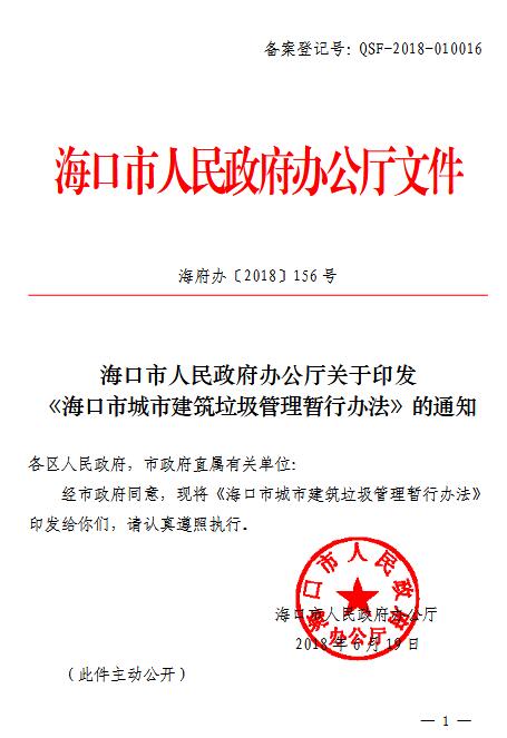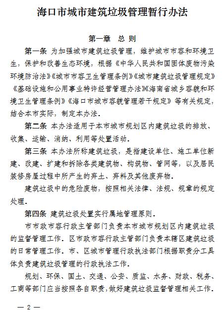 日前???/a>市人民政府辦公廳印發(fā)《海口市城市建筑垃圾管理暫行辦法》(以下簡(jiǎn)稱(chēng)《辦法》),明確要求對(duì)建筑垃圾處置實(shí)行特許經(jīng)營(yíng)管理,企業(yè)或個(gè)人如果違規(guī)處置將受處罰?!掇k法》從今年9月1日起施行,有效期兩年。