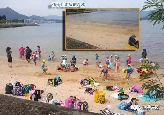 離開(kāi)時(shí),孩子們不但沒(méi)留下半點(diǎn)垃圾,甚至把他人之前的垃圾都一并帶走,就連沙灘上的玩耍痕跡都被恢復(fù)如初。