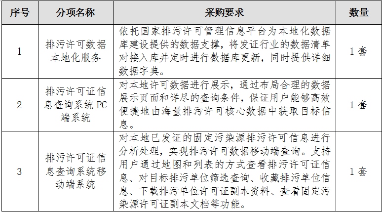 一、采購(gòu)項(xiàng)目名稱(chēng):國(guó)家排污許可證系統(tǒng)數(shù)據(jù)本地化服務(wù)