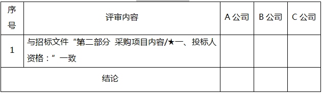 2.投標(biāo)人分欄中填寫(xiě)“○”表示該項(xiàng)符合審查要求,“×”表示該項(xiàng)不符合審查要求;