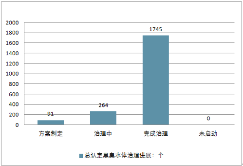 治理進程已過半,剩余空間仍可觀。根據(jù)住建部全國城市黑臭水體整治信息平臺,目前已認定的黑臭水體總數(shù)2100個。其中,已經(jīng)完成整治的黑臭水體達1745個,占全部黑臭水體總數(shù)的83.1%;正在治理和制定方案中的分別為264個和91個,分別占比12.6%和4.3%。區(qū)域分布上,正在治理中的黑臭水體主要集中在安徽、廣東、湖南、吉林、四川等省份,制定方案中的黑臭水體以安徽、遼寧、河南、河北、吉林等省份居多。方案制定中黑臭水體的總長度196.6公里,正在治理中的黑臭水體總長771.6公里,按單位長度投資額0.4億元/公里測算,對應(yīng)的投資需求分別為78.6億元、308.6億元,合計投資額約400億元左右,這還不包括后續(xù)被認定為黑臭水體的治理需求。
