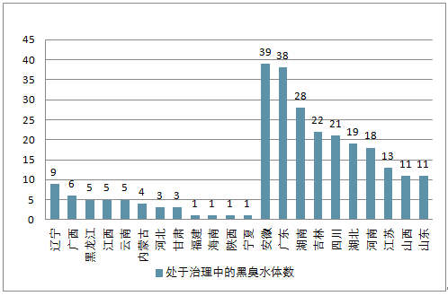 處于方案制定中的黑臭水體數(shù)(分省份)