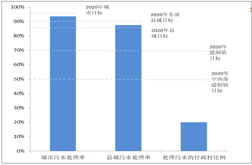 城市污水處理率基本見頂,農(nóng)村污水處理市場逐步開啟。2016年,城市污水處理率達到93.44%,縣城污水處理率達到87.38%,由于農(nóng)村污水水質(zhì)不穩(wěn)定,雜質(zhì)多,污染源分散,難以收集,環(huán)保監(jiān)管能力較弱等原因,農(nóng)村污水的處理率較低,2016年僅有20%的行政村處理了生活污水,而農(nóng)村污水卻是全國廢水污染物的主要來源,2015年排放了48%的化學(xué)需氧量和32%的氨氮。近年來,農(nóng)村污水處理漸受重視。