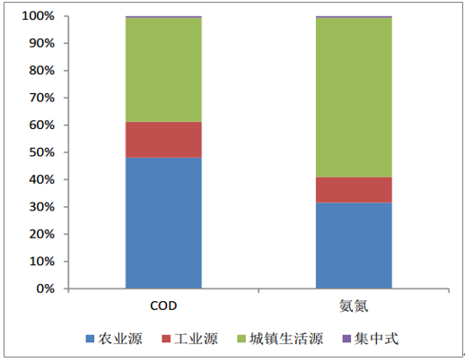 農(nóng)業(yè)源占廢水中主要污染物的比重較大