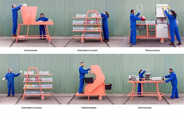 Bureau SLA 和Overtreders W 是兩家總部位于阿姆斯特丹的設(shè)計(jì)公司,它們正在把塑料垃圾轉(zhuǎn)變?yōu)閸湫碌慕ㄖ牧??!爸腔鄣牡图夹g(shù)等同于嶄新的高技術(shù)”正是他們的設(shè)計(jì)理念。 “美麗塑料車(chē)間項(xiàng)目”是獨(dú)一無(wú)二的創(chuàng)新項(xiàng)目,由建筑師和設(shè)計(jì)師合作,把塑料垃圾制作成可用的建筑外立面材料。這一創(chuàng)新團(tuán)隊(duì)認(rèn)為世上不存在廢物,除了制造時(shí)被賦予的功能,任何物品都有更多的功能,塑料尤其如此。