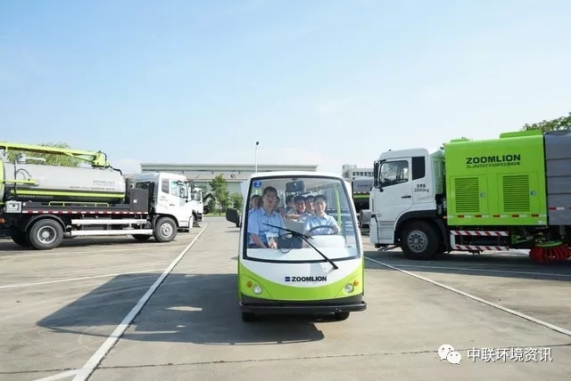 中聯(lián)環(huán)境CEO張建國、執(zhí)行總裁陳培亮陪同介紹了中聯(lián)環(huán)境無人駕駛掃路車,智能環(huán)衛(wèi)云平臺(tái)、智能垃圾箱、村鎮(zhèn)污水處理設(shè)備、新能源環(huán)衛(wèi)裝備等創(chuàng)新型產(chǎn)品,還參觀智能流水線制造車間。