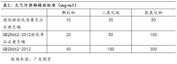 針對最低排放改造,2018年5月7日生態(tài)環(huán)境部發(fā)布《鋼鐵企業(yè)超低排放改造工作方案(征求意見稿)》要求燒結(jié)球團焙燒設(shè)備顆粒物、二氧化硫、氮氧化物小時均值排放均值分別不高于10、35和50mg/m3(上述限值僅為舊標(biāo)準(zhǔn)GB28662-2012的25%、19%和17%,為GB28662-2012修改單征求意見稿的50%、70%和50%),同時設(shè)定力爭20年底前、22年底前、25年底前分別完成鋼鐵產(chǎn)能改造4.8億噸、5.8億噸、9億噸左右的目標(biāo)。