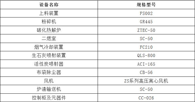 因垃圾碳化熱解過程中產(chǎn)生的酸性氣體達(dá)到國家排放標(biāo)準(zhǔn),生石灰噴射裝置主要作為非正常工況下的應(yīng)急措施,并采用噴射生石灰干粉,工藝簡單,實(shí)現(xiàn)脫硫、脫有害氣體的目的。生石灰干粉的投放量,根據(jù)煙氣中二氧化硫和有害氣體的含量多少而定,以確保用量的經(jīng)濟(jì)性。