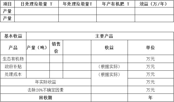 如按照一般農(nóng)村人口約3000人計算,人均日產(chǎn)生活垃圾 1.0kg計算,政府每年的分類支出約186萬元,還不計算垃圾轉(zhuǎn)運(yùn)費(fèi)、壓縮處置費(fèi)、中轉(zhuǎn)站人工分選費(fèi)、運(yùn)行費(fèi)、處置費(fèi)等。如日處理3噸的項(xiàng)目由我公司投資運(yùn)行,政府如支付垃圾處理費(fèi)1000元每噸的價格,政府每年只需要支付我公司的費(fèi)用為100萬元。