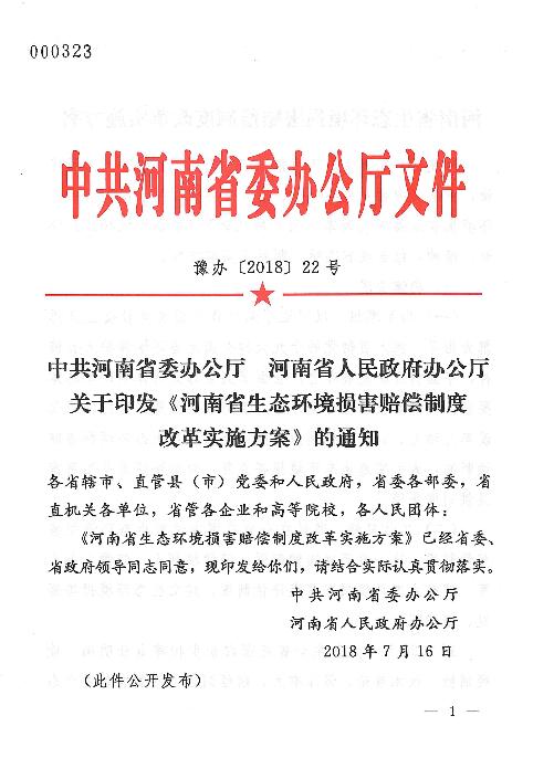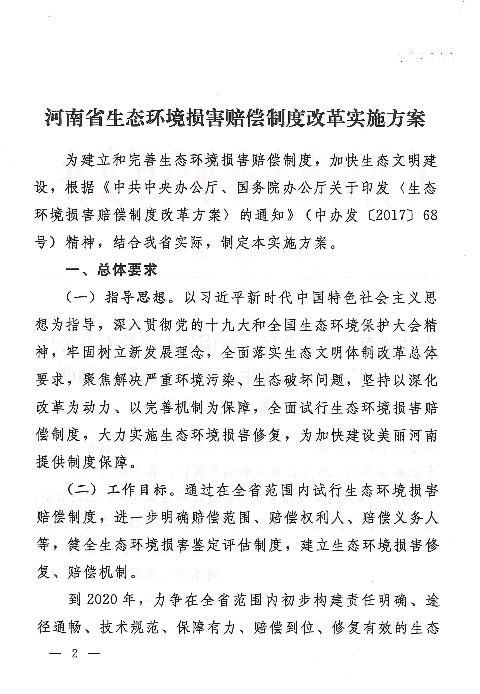 河南省生態(tài)環(huán)境損害賠償制度改革實(shí)施方案