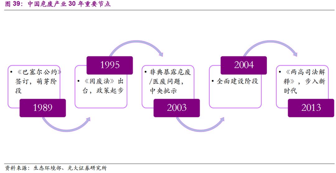 系列第一篇,我們從我國危廢行業(yè)的發(fā)展史入手,嘗試去解答造成行業(yè)現(xiàn)狀的深層次原因,從歷史趨勢出發(fā),結(jié)合短期波動,看清行業(yè)走勢;并通過國際比較,明確行業(yè)發(fā)展所處階段,對未來可能要面對的方向做出預(yù)測。