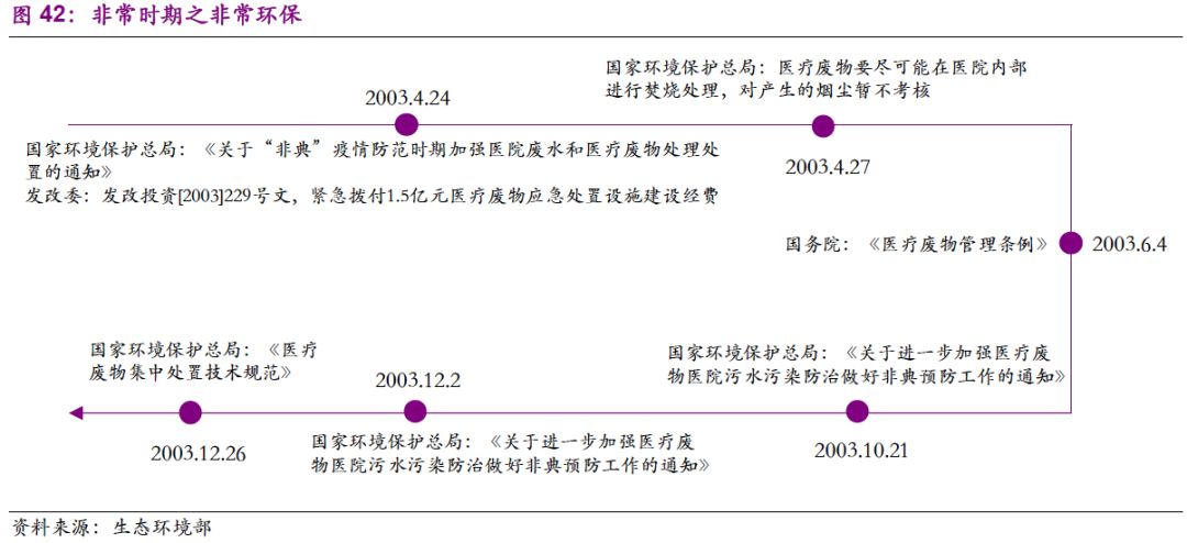 “非典”對于危廢行業(yè)的意義,是很多人所不知道的,它直接引發(fā)了往后十年間的建設(shè)大潮。2003年非典爆發(fā)后,大量產(chǎn)生的醫(yī)療廢物對環(huán)保系統(tǒng)造成嚴(yán)重沖擊。環(huán)保總局多次下發(fā)通知,要求各地加強醫(yī)療廢物和廢水的處理。同時,發(fā)改委緊急撥付1.5億元,用于各地應(yīng)急處置設(shè)施建設(shè)。國務(wù)院頒布《醫(yī)療廢物管理條例》,2003年末環(huán)??偩职l(fā)布《醫(yī)療廢物集中處置技術(shù)規(guī)范》。