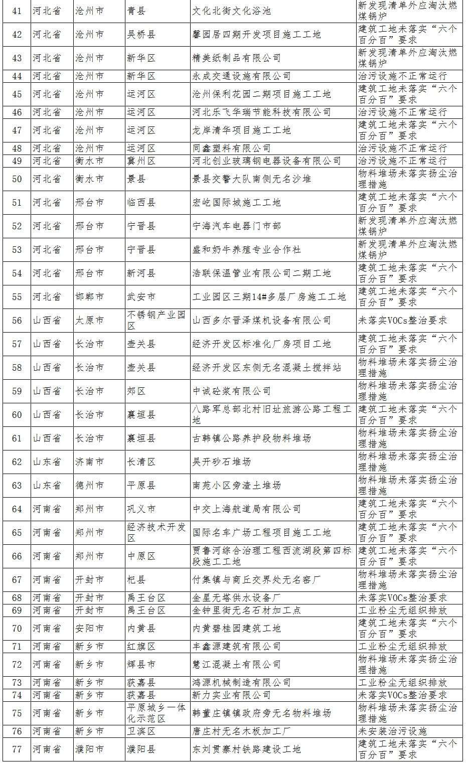 8月11日,2018-2019年藍(lán)天保衛(wèi)戰(zhàn)重點(diǎn)區(qū)域強(qiáng)化督查工作繼續(xù)開(kāi)展,200個(gè)督查組按照工作方案要求,對(duì)京津冀及周邊地區(qū)204個(gè)縣(市、區(qū))進(jìn)行督查,發(fā)現(xiàn)涉氣環(huán)境問(wèn)題78個(gè)(其中1家企業(yè)有2臺(tái)應(yīng)淘汰燃煤鍋爐,見(jiàn)附件),如下: