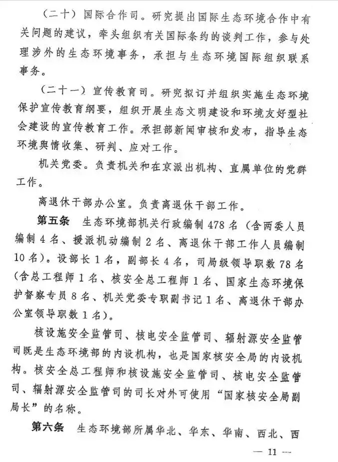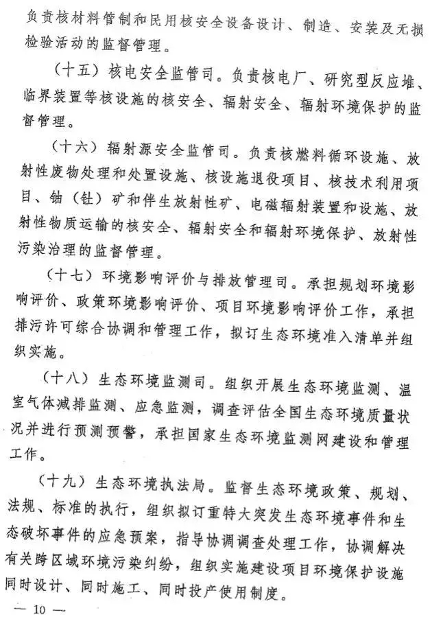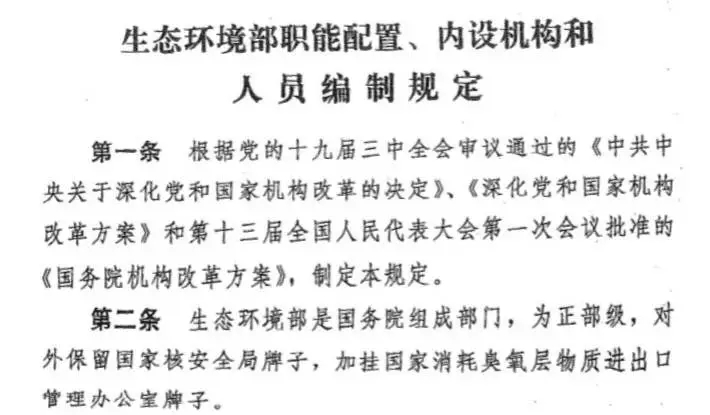 據(jù)有關(guān)人士透露,這一方案在原環(huán)境保護部“三定”方案基礎(chǔ)上,有了很多不同。明確生態(tài)環(huán)境部是國務(wù)院組成部門,為正部級,對外保留國家核安全局牌子,加掛國家消耗臭氧層物質(zhì)進出口管理辦公室牌子。