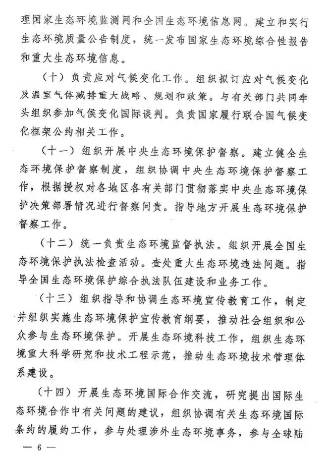 此外,在生態(tài)環(huán)境部的職能中,又增加了幾項重要工作,即負責(zé)應(yīng)對氣候變化、組織開展中央生態(tài)環(huán)境保護督察、海洋生態(tài)環(huán)境監(jiān)管等。