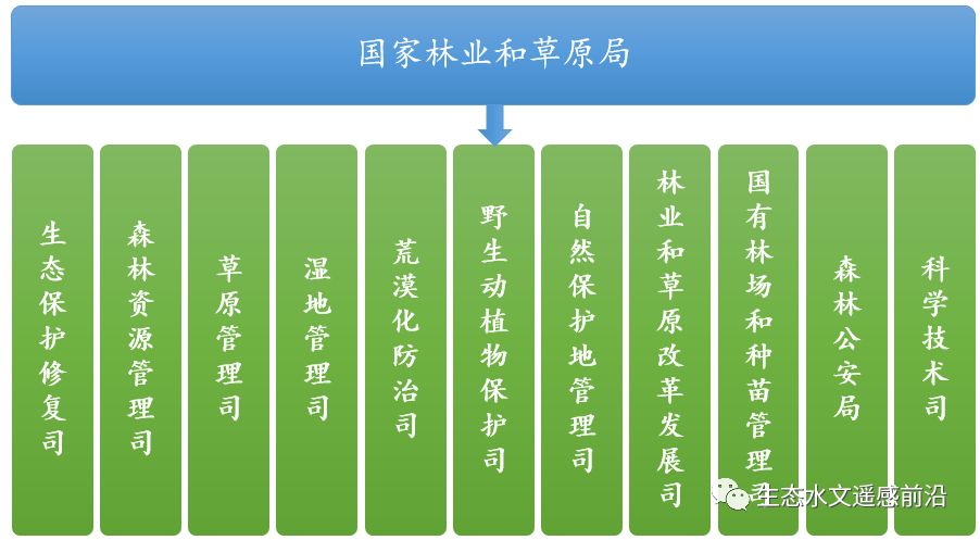 國家林業(yè)和草原局是自然資源部管理的國家局,為副部級,加掛國家公園管理局的牌子。國家林業(yè)和草原局整合了國家林業(yè)局的職責,農(nóng)業(yè)部的草原監(jiān)督管理職責,和國土資源部、住建部、水利部等的自然保護區(qū)、風景名勝區(qū)等管理職責。