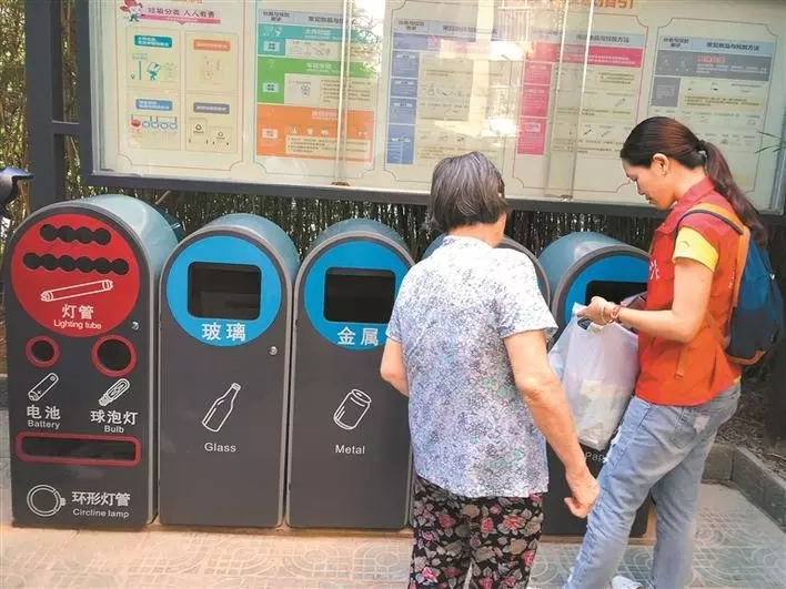 深圳不僅要給居民一個清晰的垃圾分類投放指引,還要給一個垃圾分類投放處,讓居民小區(qū)里,垃圾分類投放指引清晰,設施布局完善。目前,城管部門已在全市3478個物業(yè)小區(qū)(城中村)統(tǒng)一配置分類收集容器5913組。