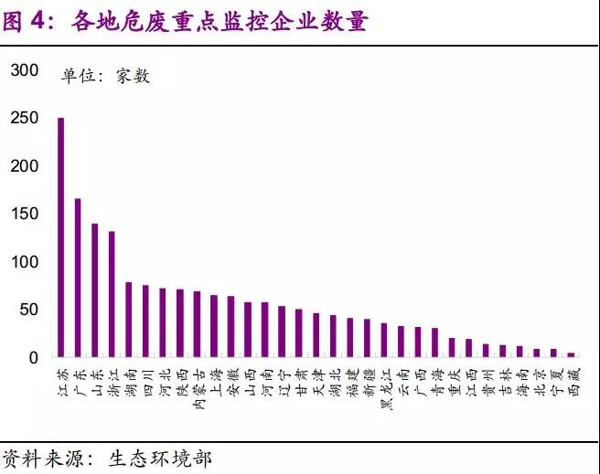2.官方統(tǒng)計(jì)量的意義在于:反映環(huán)保力量所觸及之處的顯性需求。當(dāng)前我國(guó)危廢產(chǎn)量實(shí)行企業(yè)申報(bào)制度,隨著《“十三五”全國(guó)危險(xiǎn)廢物規(guī)范化管理督查考核工作方案》的出臺(tái),各地已建立起省、市、縣三級(jí)重點(diǎn)監(jiān)控企業(yè)名單的背景下,官方統(tǒng)計(jì)數(shù)據(jù)的意義在于反映出環(huán)保力量所觸及之處所引起的危廢治理需求,即危廢的顯性需求。