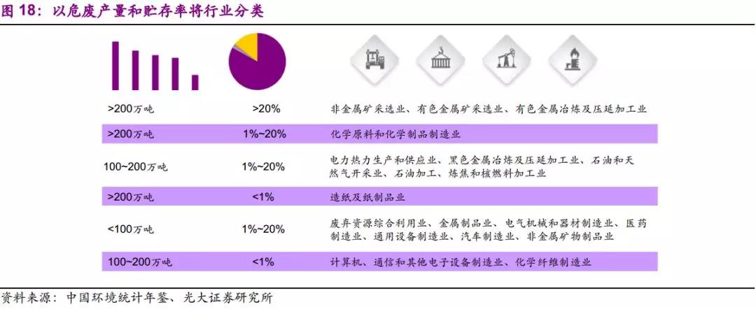 ◆危廢需求冰山浮出水面,雙層疊加帶動(dòng)量?jī)r(jià)齊升。環(huán)保執(zhí)法與制度完善是危廢處置需求釋放的關(guān)鍵推力。環(huán)保執(zhí)法(環(huán)保督察、清廢2018、二污普等)和制度完善(排污許可制度、環(huán)保稅及規(guī)范化管理考核等)將從短期和長(zhǎng)期推動(dòng)處置需求持續(xù)提升。當(dāng)前的處置需求主要來(lái)源于兩方面:1)增量部分:每年新增危廢中瞞報(bào)、漏報(bào)行為減少,非法轉(zhuǎn)移和傾倒途徑被切斷,大量危廢回歸正規(guī)化途徑;2)存量部分:大量危廢超期貯存和歷史遺留被發(fā)現(xiàn),多數(shù)已進(jìn)入當(dāng)?shù)卣畏桨?,處置需求十分迫切?/p>
