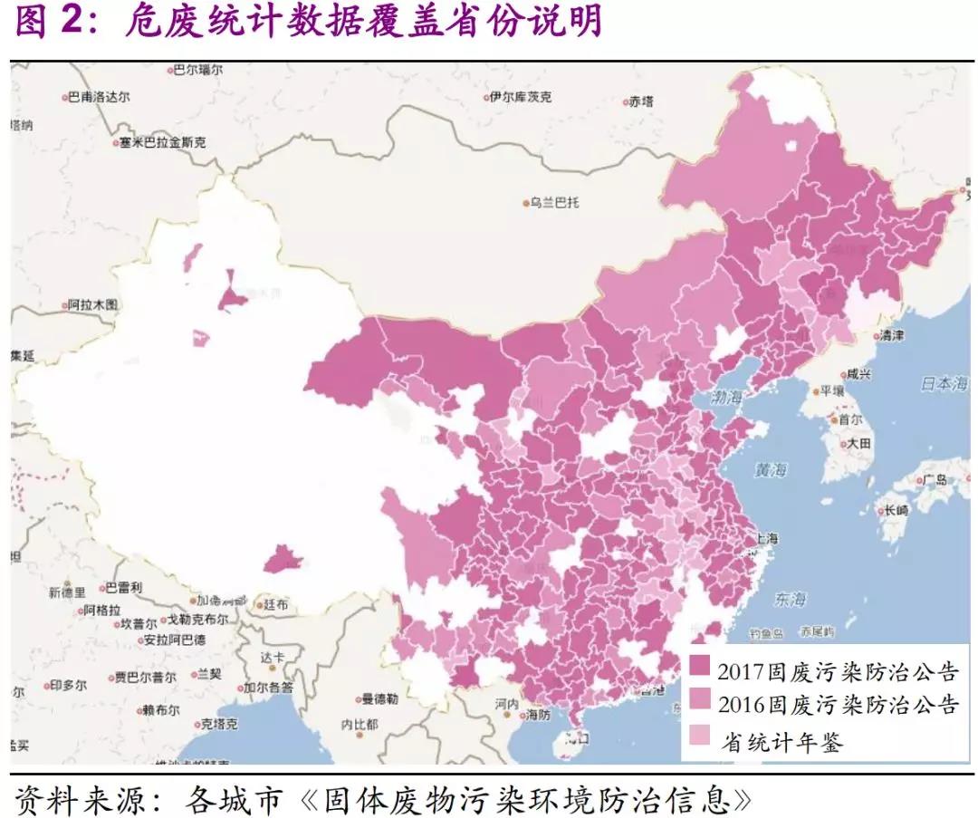 1)現(xiàn)有的市場(chǎng)研究中,對(duì)行業(yè)部分的理解仍停留在模糊層面。我們首次歸結(jié)全國(guó)300余個(gè)城市《固體廢物污染環(huán)境防治公告》,對(duì)數(shù)據(jù)進(jìn)行綜合分析,并結(jié)合各地各行業(yè)工業(yè)總產(chǎn)值,在危廢產(chǎn)量-種類-工業(yè)結(jié)構(gòu)之間建立起分析框架。
