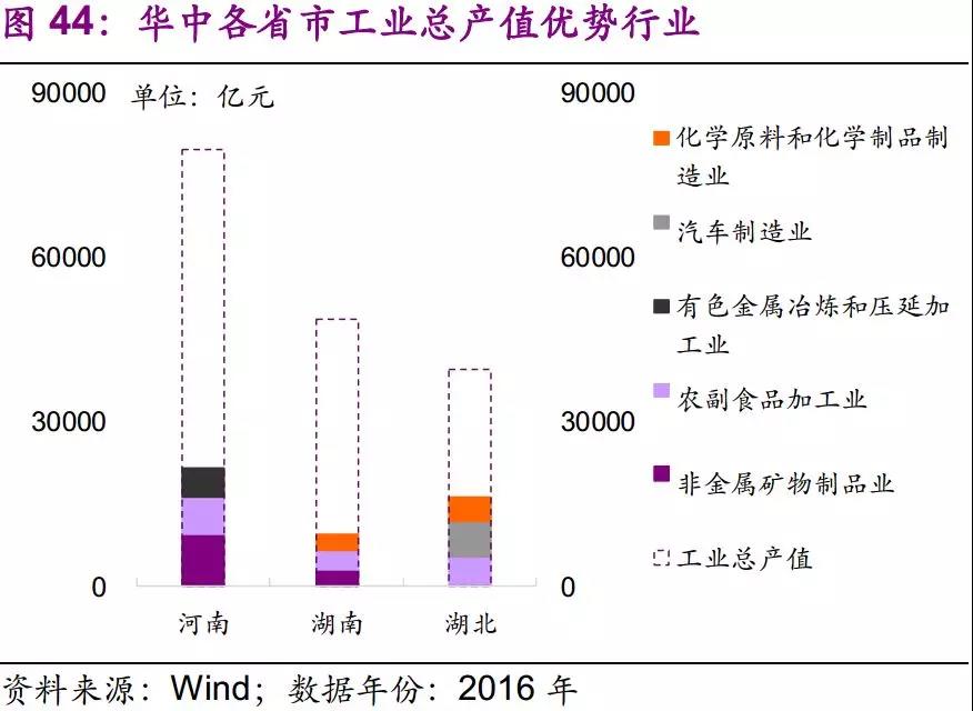 從全行業(yè)來(lái)看,河南、湖南、湖北優(yōu)勢(shì)產(chǎn)業(yè)分別為非金屬礦物制品業(yè)、農(nóng)副食品加工業(yè)和汽車制造業(yè)。