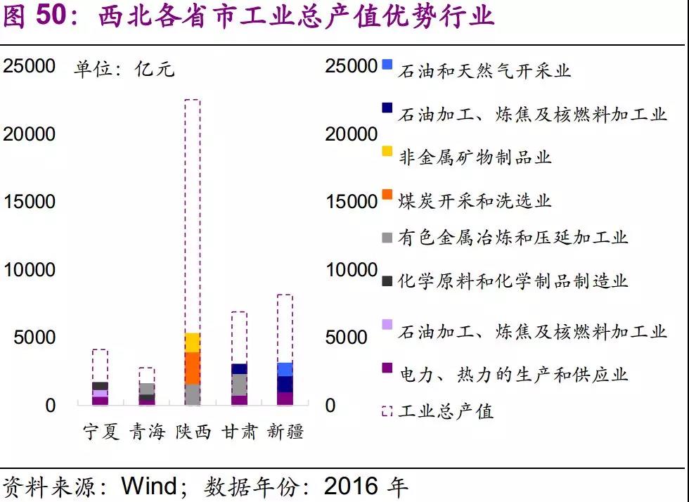 從全行業(yè)來(lái)看,寧夏、青海、陜西、甘肅、新疆的優(yōu)勢(shì)產(chǎn)業(yè)分別為電力、熱力的生產(chǎn)和供應(yīng)業(yè)、有色金屬冶煉和壓延加工業(yè)、煤炭開采和洗選業(yè)、有色金屬冶煉和壓延加工業(yè)和石油加工、煉焦及核燃料加工業(yè)。