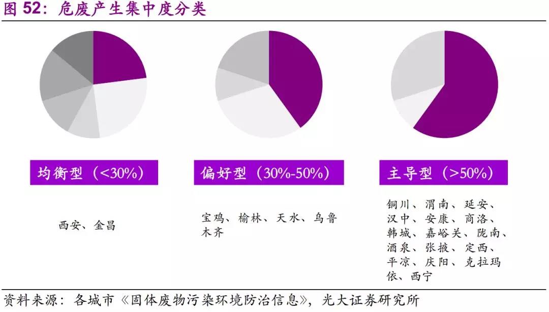 集中度上看,不管是危廢種類還是產(chǎn)廢企業(yè),西部、東北地區(qū)明顯大于東部沿海。