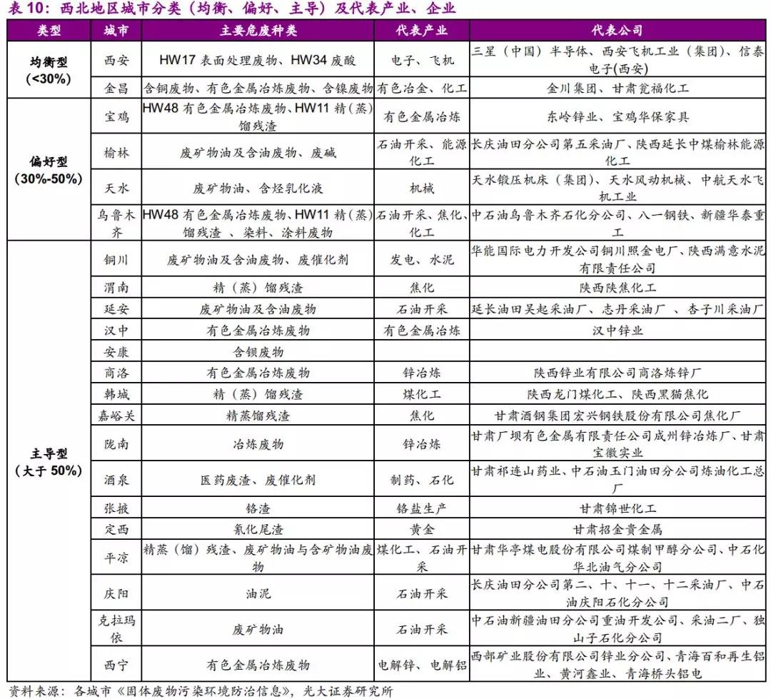 因此,我們認(rèn)為西北地區(qū)應(yīng)重點(diǎn)關(guān)注有色金屬冶煉和壓延加工業(yè)及黑色金屬冶煉及壓延加工業(yè)所產(chǎn)生的危廢,如有色金屬冶煉廢物、廢酸等。