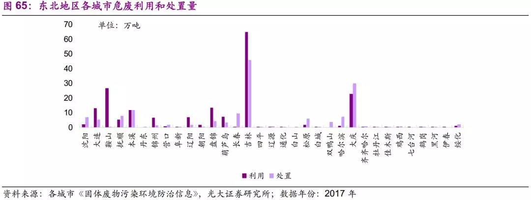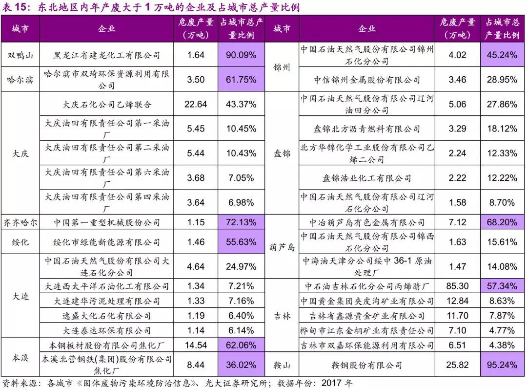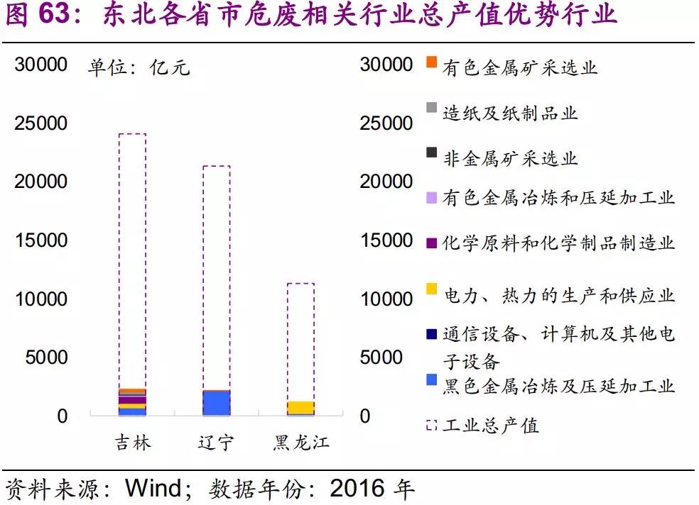 因此,我們認(rèn)為東北地區(qū)應(yīng)重點(diǎn)關(guān)注黑色金屬冶煉及壓延加工業(yè)和石油加工、煉焦及核燃料加工業(yè)所產(chǎn)生的危廢,如廢礦物油、蒸餾(精餾)殘?jiān)取?/p>