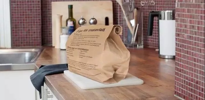 在瑞典,廚余垃圾有垃圾處理公司專(zhuān)門(mén)提供的棕色垃圾紙袋,裝滿后在開(kāi)口處對(duì)折兩次,揭開(kāi)自粘膠封條可以封起來(lái),然后就可以扔在棕色的垃圾大桶里或者專(zhuān)用的廚余垃圾收集處。