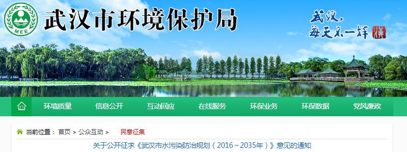 關(guān)于公開征求《武漢市水污染防治規(guī)劃(2016~2035年)》意見的通知