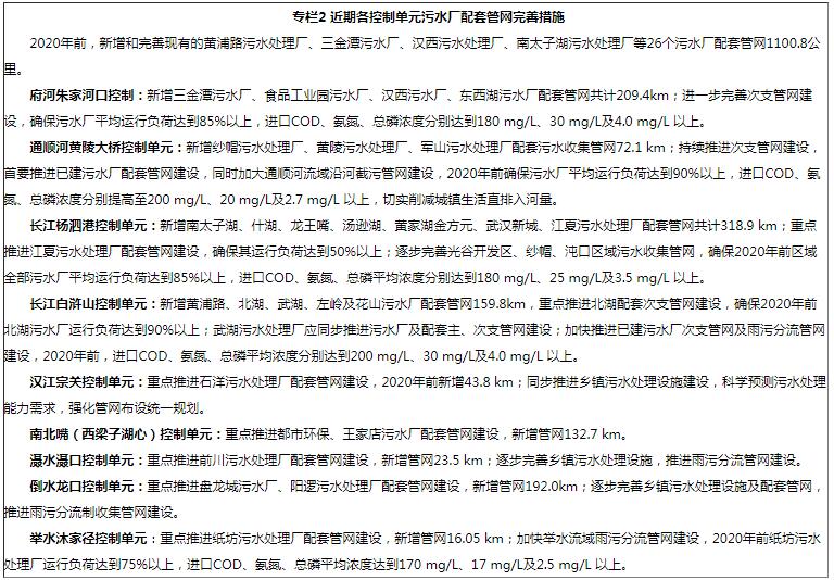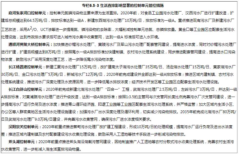 加快城鎮(zhèn)污水處理設(shè)施提標(biāo)改造。梁子湖、斧頭湖等敏感區(qū)域內(nèi)的現(xiàn)有城鎮(zhèn)污水處理設(shè)施2016年底前達(dá)到一級A排放標(biāo)準(zhǔn);新建城鎮(zhèn)污水處理設(shè)施執(zhí)行一級A排放標(biāo)準(zhǔn),現(xiàn)有處理設(shè)施需強(qiáng)化脫氮除磷工藝,逐步達(dá)到一級A排放標(biāo)準(zhǔn)。2020年前,灄水灄口控制單元、倒水龍口控制單元、舉水沐家徑控制單元、長江白滸山控制單元、長江楊泗港控制單元等重點區(qū)域內(nèi)污水廠應(yīng)完成提標(biāo)改造,出水達(dá)到一級A排放標(biāo)準(zhǔn);2035年前,研究基于水環(huán)境質(zhì)量目標(biāo)的城鎮(zhèn)生活污水廠出水排放指標(biāo)及要求,完成全市城鎮(zhèn)污水處理廠達(dá)標(biāo)改造工程。