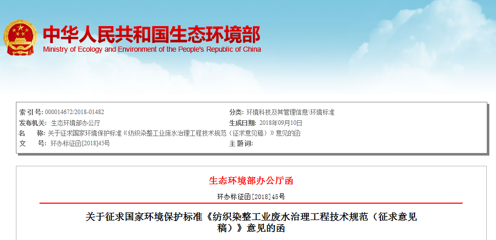 為貫徹《中華人民共和國環(huán)境保護(hù)法》和《中華人民共和國水污染防治法》等法律法規(guī),防治環(huán)境污染,改善環(huán)境質(zhì)量,規(guī)范紡織染整工業(yè)廢水治理工程設(shè)施的建設(shè)和運行管理,我部決定制定《紡織染整工業(yè)廢水治理工程技術(shù)規(guī)范》。