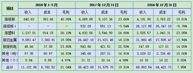 注:廢紙板1是指永川分公司的銷售業(yè)務,現(xiàn)已基本停止廢紙業(yè)務。